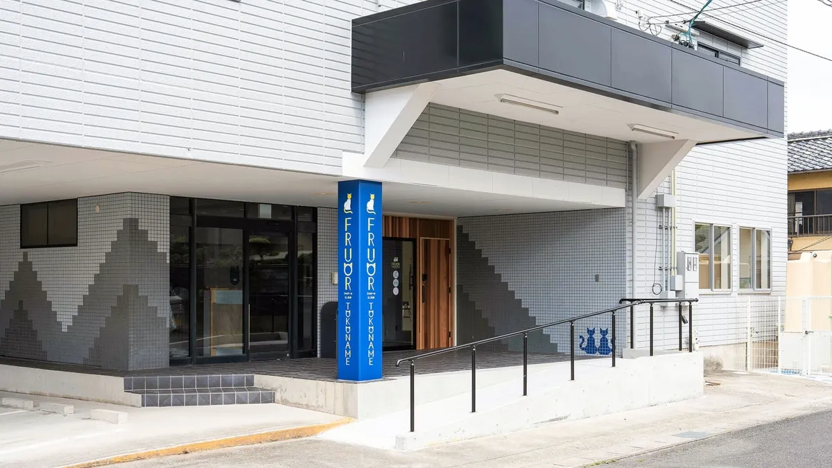 ブルーの猫のサインがFRUOR TOKONAMEの目印です