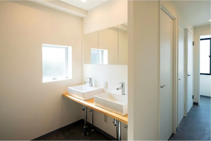 洗面所・トイレは、安心してご利用いただけるセキュリティーロック付き男女別でご用意しております。