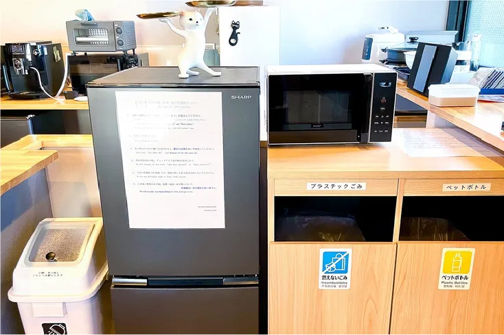 長期滞在にも便利な、共用の冷蔵庫や電子レンジなどの設備も充実。